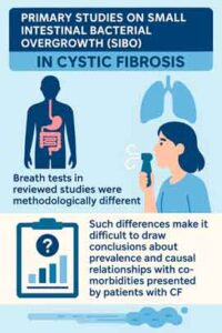 • Primary studies on small intestinal bacterial overgrowth (SIBO) by using breath tests in patients with cystic fibrosis were analyzed.
